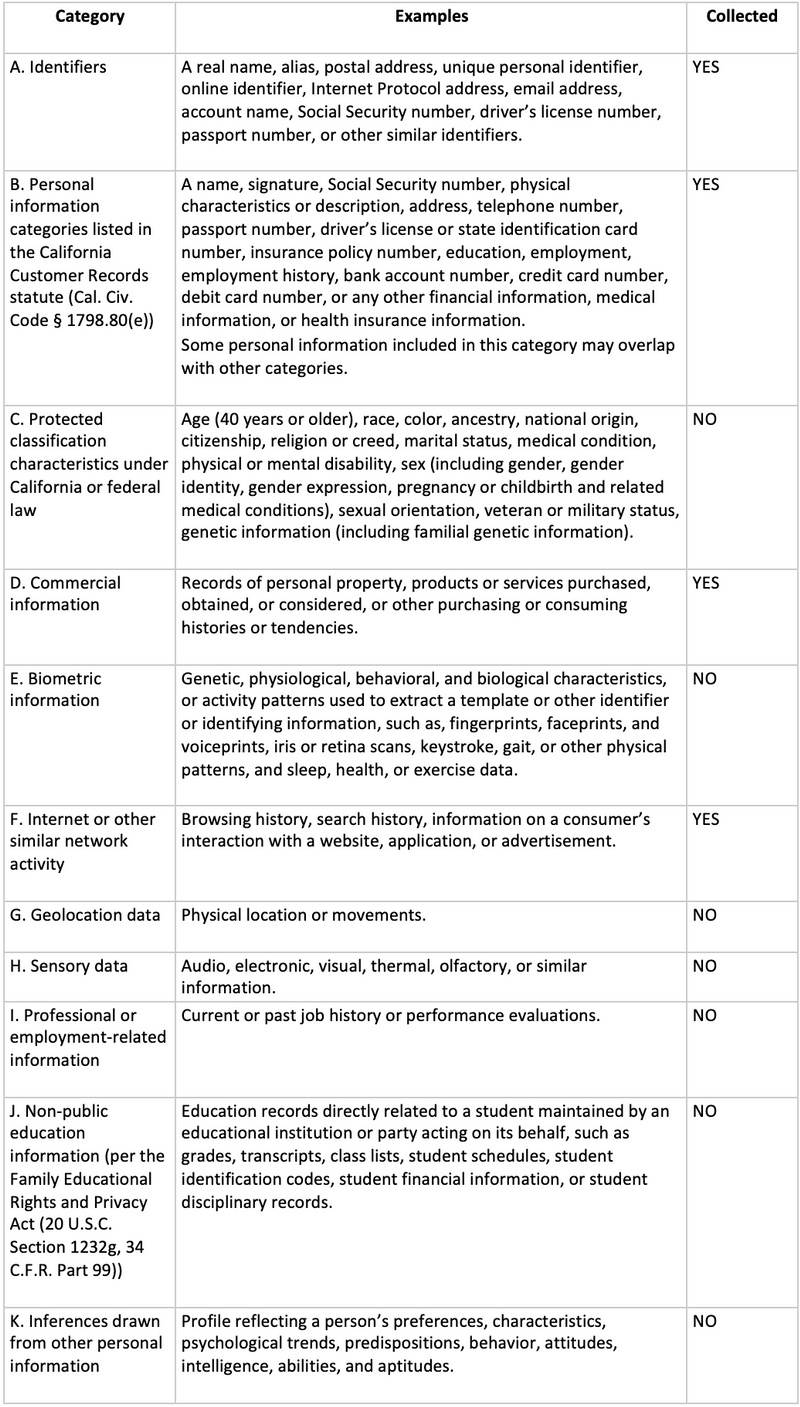 We will only use personal information provided in a verifiable consumer request to verify the requestor’s identity or authority to make the request.